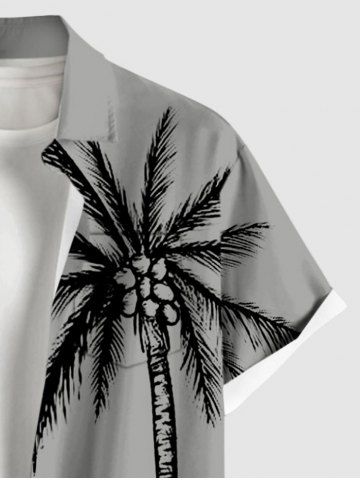 Plus Size Coconut Tree Octopus Colorblock Print Buttons Pocket Hawaii Shirt For Men - Gray - 6xl
