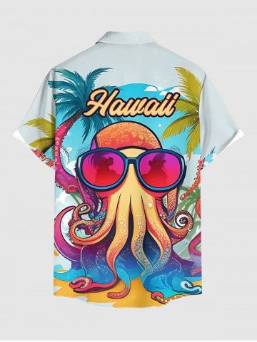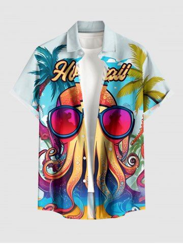 Short Sleeves Shirts > Plus Size Coconut Tree Octopus Letters Print Hawaii Button Pocket Shirt For Men