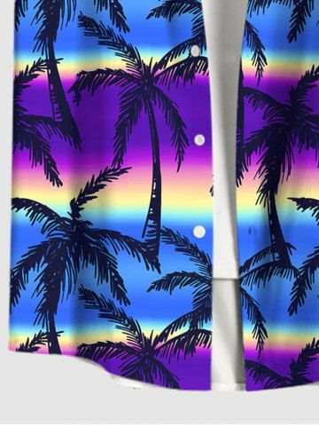 Plus Size Coconut Tree Ombre Aurora Colorblock Print Button Pocket Hawaii Shirt For Men - Multi-a - M