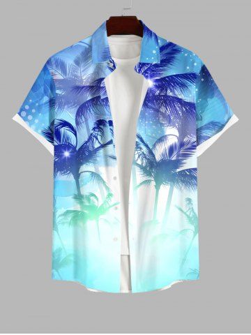 Short Sleeves Shirts > Plus Size Coconut Tree Ombre Colorblock Glitter 3D Print Buttons Pocket Hawaii Shirt For Men