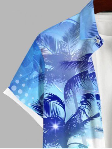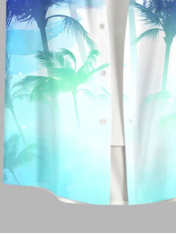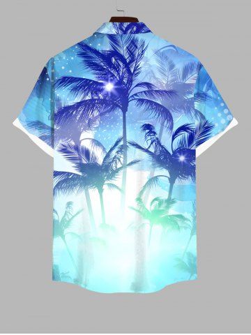 Plus Size Coconut Tree Ombre Colorblock Glitter 3D Print Buttons Pocket Hawaii Shirt For Men - Multi-a - L