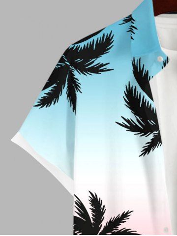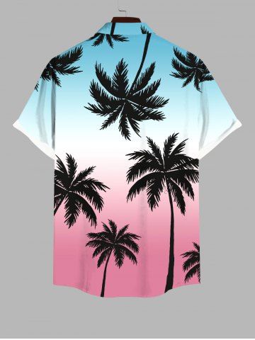 Plus Size Coconut Tree Ombre Colorblock Print Buttons Pocket Hawaii Shirt For Men - Multi-a - M