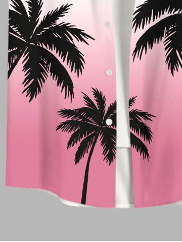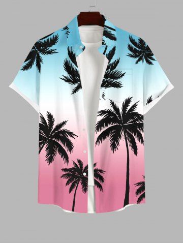 Plus Size Coconut Tree Ombre Colorblock Print Buttons Pocket Hawaii Shirt For Men - Multi-a - 4xl