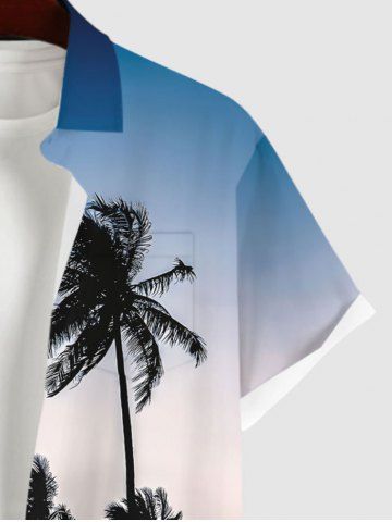 Plus Size Coconut Tree Ombre Colorblock Print Buttons Pocket Hawaii Shirt For Men - Multi-a - L