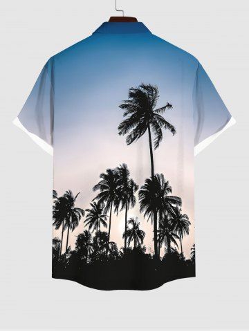 Plus Size Coconut Tree Ombre Colorblock Print Buttons Pocket Hawaii Shirt For Men - Multi-a - Xl