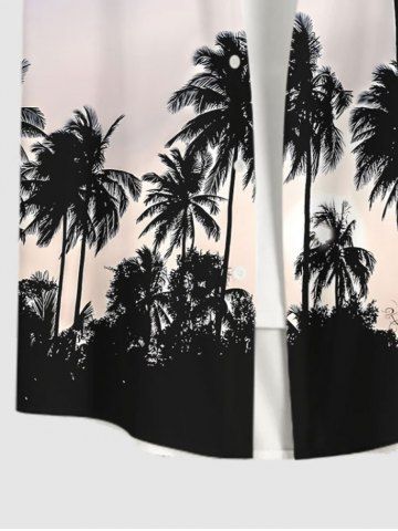 Plus Size Coconut Tree Ombre Colorblock Print Buttons Pocket Hawaii Shirt For Men - Multi-a - 4xl