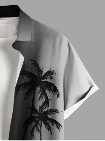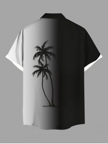 Plus Size Coconut Tree Ombre Colorblock Print Buttons Pocket Hawaii Shirt For Men - Black - M