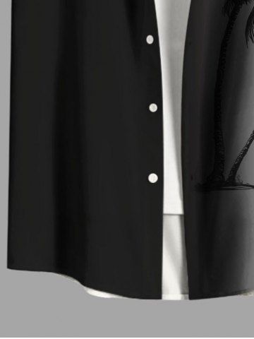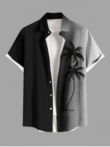 Plus Size Coconut Tree Ombre Colorblock Print Buttons Pocket Hawaii Shirt For Men - Black - 4xl