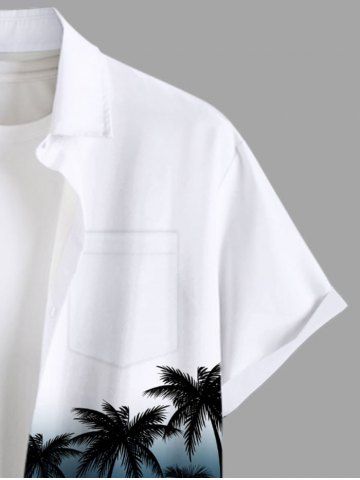 Short Sleeves Shirts > Plus Size Coconut Tree Ombre Colorblock Print Buttons Pocket Hawaii Shirt For Men