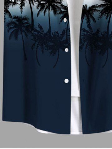 Plus Size Coconut Tree Ombre Colorblock Print Buttons Pocket Hawaii Shirt For Men - Black - 4xl