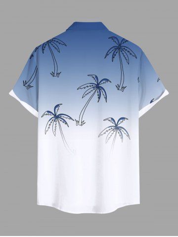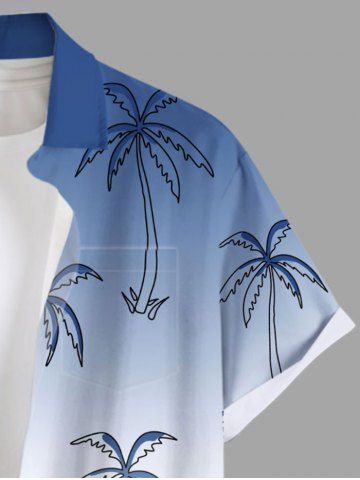Plus Size Coconut Tree Ombre Colorblock Print Buttons Pocket Hawaii Shirt For Men - Blue - 3xl