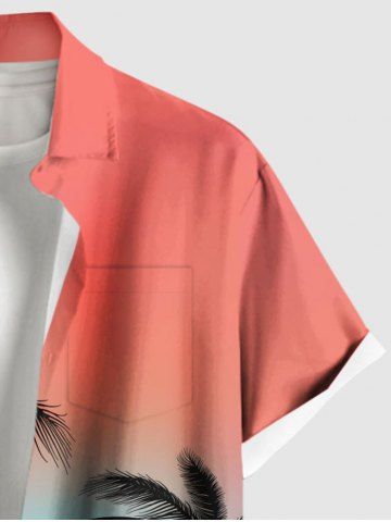 Plus Size Coconut Tree Ombre Colorblock Print Buttons Pocket Hawaii Shirt For Men - Light Pink - L