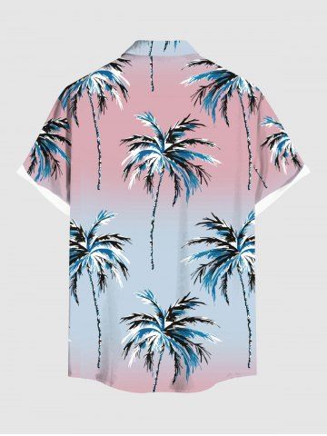 Plus Size Coconut Tree Ombre Colorblock Print Buttons Pocket Hawaii Shirt For Men - Light Blue - 6xl
