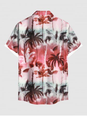 Plus Size Coconut Tree Ombre Colorblock Print Buttons Pocket Hawaii Shirt For Men - Red - S