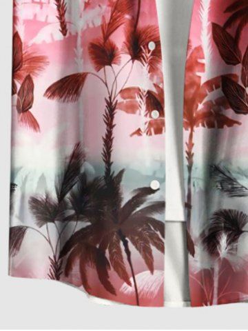 Plus Size Coconut Tree Ombre Colorblock Print Buttons Pocket Hawaii Shirt For Men - Red - 5xl