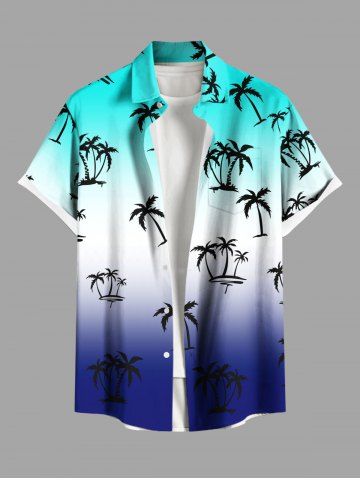 Short Sleeves Shirts > Plus Size Coconut Tree Ombre Colorblock Print Buttons Pocket Hawaii Shirt For Men