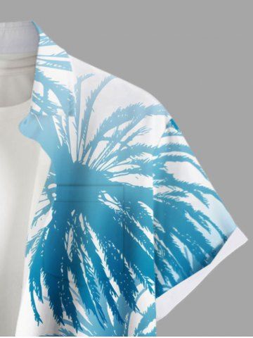 Plus Size Coconut Tree Ombre Colorblock Print Buttons Pocket Hawaii Shirt For Men - Light Blue - Xl