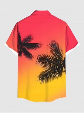 Plus Size Coconut Tree Ombre Colorblock Print Buttons Pocket Hawaii Shirt For Men - Red - S