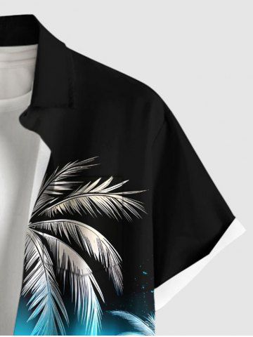 Plus Size Coconut Tree Ombre Colorblock Print Buttons Pocket Hawaii Shirt For Men - Black - M