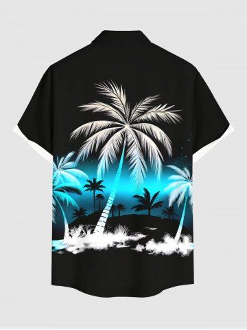 Plus Size Coconut Tree Ombre Colorblock Print Buttons Pocket Hawaii Shirt For Men - Black - Xl
