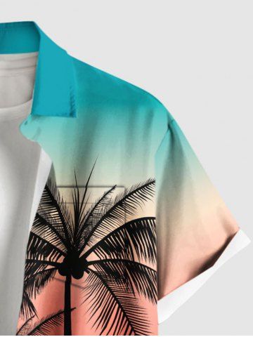 Short Sleeves Shirts > Plus Size Coconut Tree Ombre Colorblock Print Buttons Pocket Hawaii Shirt For Men