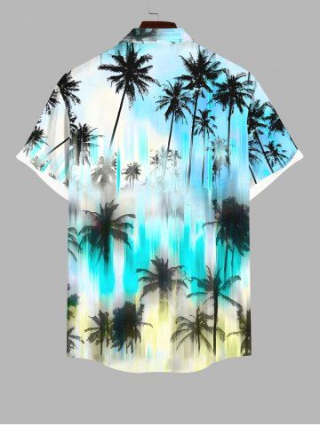 Plus Size Coconut Tree Ombre Colorblock Print Buttons Pocket Hawaii Shirt For Men - Multi-a - M