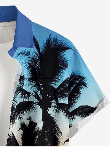 Plus Size Coconut Tree Ombre Colorblock Print Buttons Pocket Hawaii Shirt For Men - Light Blue - 6xl