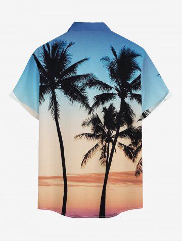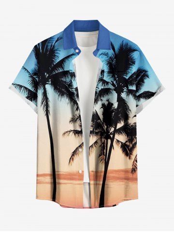 Short Sleeves Shirts > Plus Size Coconut Tree Ombre Colorblock Print Buttons Pocket Hawaii Shirt For Men