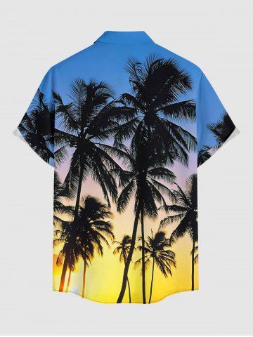 Plus Size Coconut Tree Ombre Colorblock Print Buttons Pocket Hawaii Shirt For Men - Sky Blue - 4xl