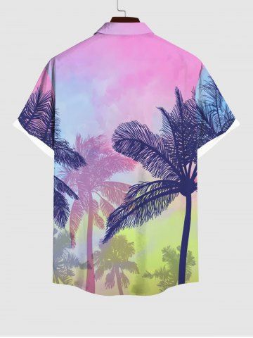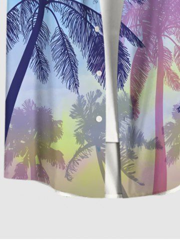 Short Sleeves Shirts > Plus Size Coconut Tree Ombre Colorblock Sky Print Buttons Pocket Hawaii Shirt For Men