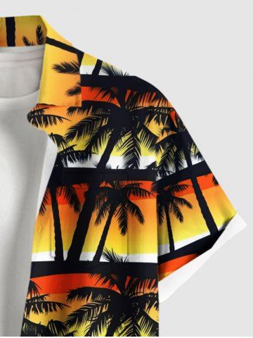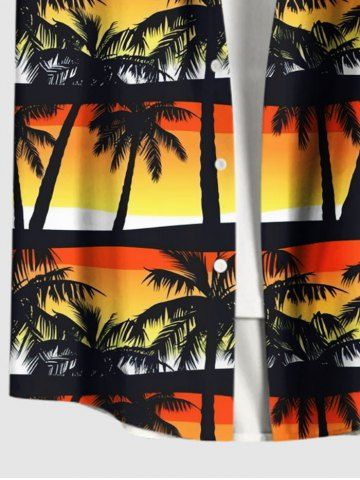 Plus Size Coconut Tree Ombre Colorblock Sky Print Buttons Pocket Hawaii Shirt For Men - Yellow - 3xl