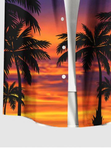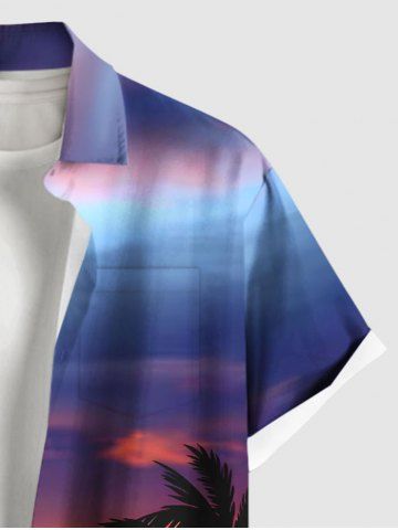 Short Sleeves Shirts > Plus Size Coconut Tree Ombre Colorful Sky Print Buttons Pocket Hawaii Shirt For Men