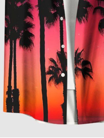 Plus Size Coconut Tree Ombre Dusk Galaxy Print Hawaii Button Pocket Shirt For Men - Red - 2xl