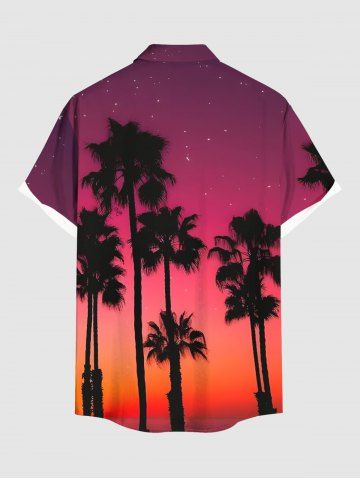 Plus Size Coconut Tree Ombre Dusk Galaxy Print Hawaii Button Pocket Shirt For Men - Red - 4xl