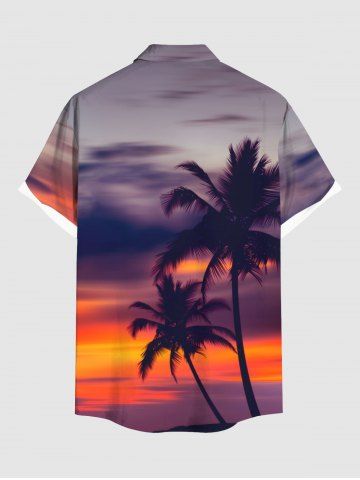Short Sleeves Shirts > Plus Size Coconut Tree Ombre Dusk Print Hawaii Button Pocket Shirt For Men