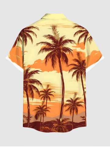 Plus Size Coconut Tree Ombre Dusk Print Hawaii Button Pocket Shirt For Men - Yellow - L