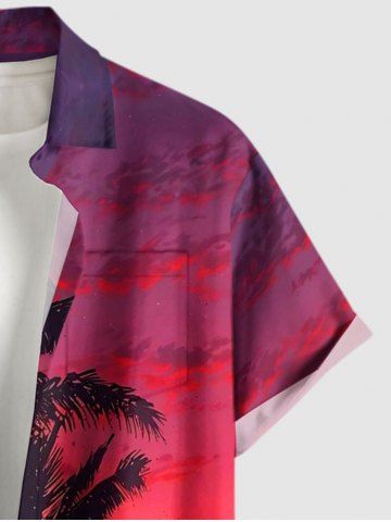 Short Sleeves Shirts > Plus Size Coconut Tree Ombre Dusk Print Hawaii Button Pocket Shirt For Men