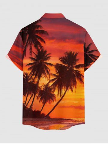 Plus Size Coconut Tree Ombre Dusk Print Hawaii Button Pocket Shirt For Men - Burnt Orange - L