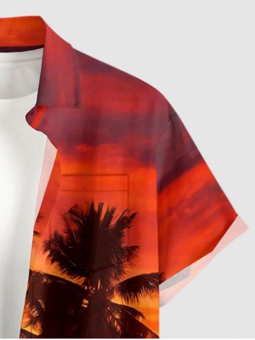 Short Sleeves Shirts > Plus Size Coconut Tree Ombre Dusk Print Hawaii Button Pocket Shirt For Men