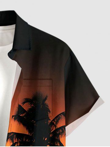 Short Sleeves Shirts > Plus Size Coconut Tree Ombre Dusk Print Hawaii Button Pocket Shirt For Men