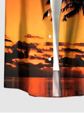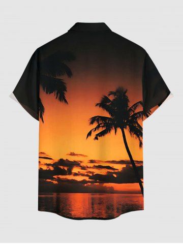 Plus Size Coconut Tree Ombre Dusk Print Hawaii Button Pocket Shirt For Men - Burnt Orange - 6xl