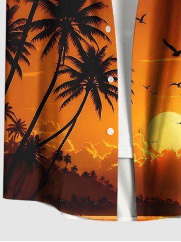 Plus Size Coconut Tree Ombre Dusk Sunset Print Hawaii Button Pocket Shirt For Men - Orange - M