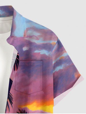 Plus Size Coconut Tree Ombre Dusk Sunset Print Hawaii Button Pocket Shirt For Men - Dull Purple - L