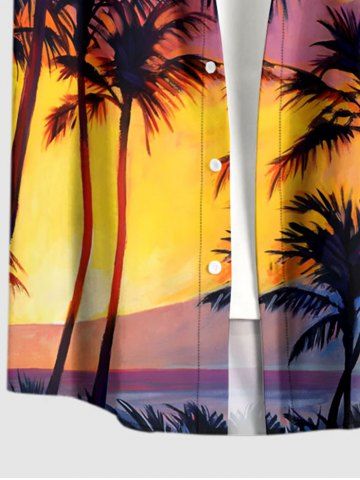 Plus Size Coconut Tree Ombre Dusk Sunset Print Hawaii Button Pocket Shirt For Men - Dull Purple - 5xl