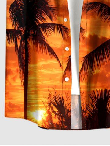 Plus Size Coconut Tree Ombre Dusk Sunset Print Hawaii Button Pocket Shirt For Men - Light Brown - L