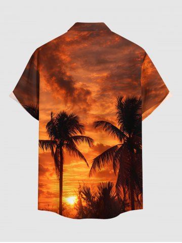 Short Sleeves Shirts > Plus Size Coconut Tree Ombre Dusk Sunset Print Hawaii Button Pocket Shirt For Men