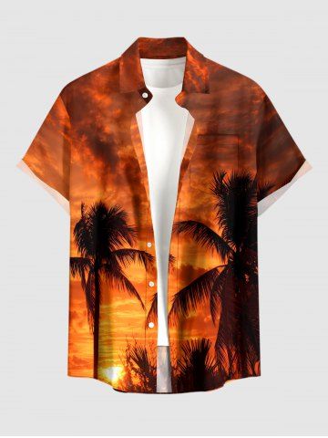 Short Sleeves Shirts > Plus Size Coconut Tree Ombre Dusk Sunset Print Hawaii Button Pocket Shirt For Men