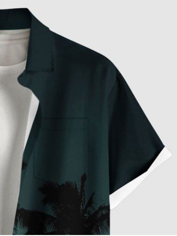 Plus Size Coconut Tree Ombre Galaxy Print Hawaii Button Pocket Shirt For Men - Black - 2xl
