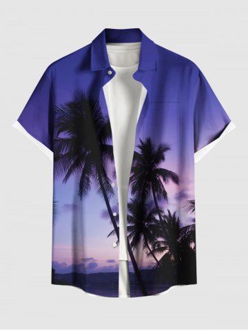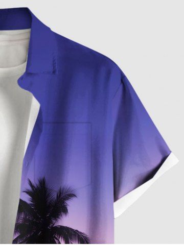 Plus Size Coconut Tree Ombre Galaxy Print Hawaii Button Pocket Shirt For Men - Blue - M