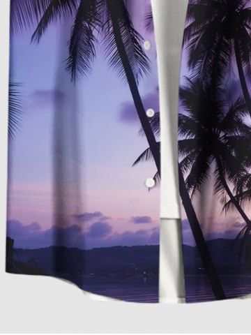 Short Sleeves Shirts > Plus Size Coconut Tree Ombre Galaxy Print Hawaii Button Pocket Shirt For Men